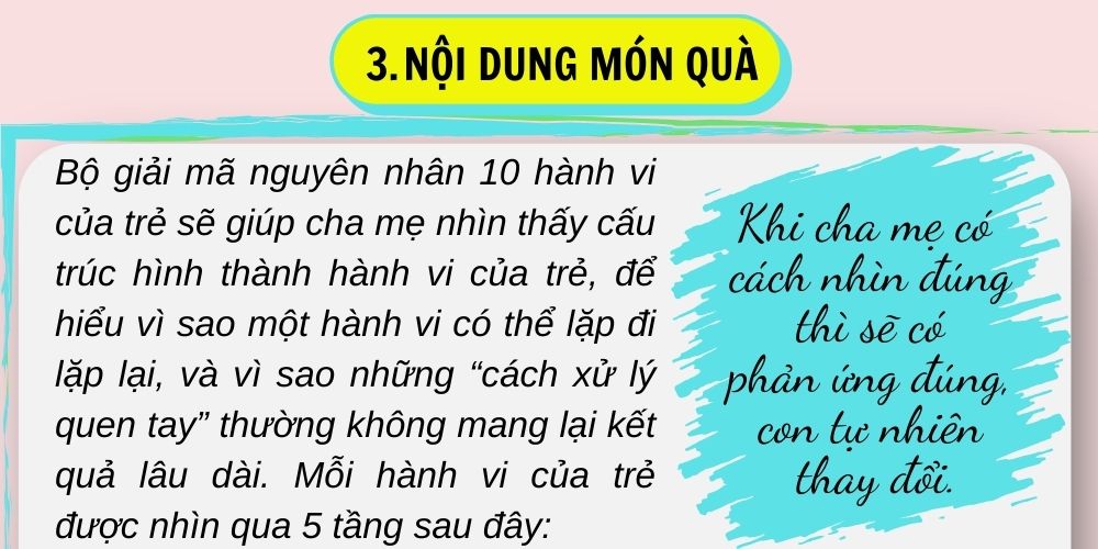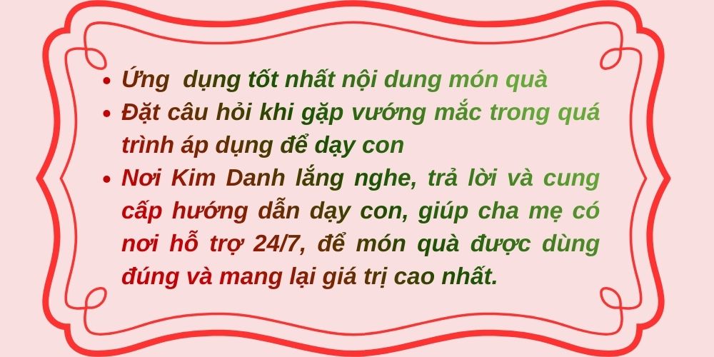Chính khoảnh khắc này mới cho thấy bạn là cha mẹ yêu con minh triết. Và đó là bước đầu tiên của mọi hành trình giáo dục đúng. Món quà bạn sắp nhận là kết quả nghiên cứu trong lĩnh vực Giáo dục – Tâm lý – Khoa học thuộc trường phái Giáo dục từ Gốc.