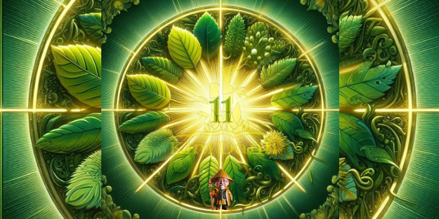 Biểu tượng vàng xanh lá gắn liền với số 11 trong thần số học tạo ra một hình ảnh mạnh mẽ, mang ý nghĩa sâu sắc về sự cân bằng giữa sự kết nối tâm linh và nguồn năng lượng tự nhiên đầy sống động. Đây là sự pha trộn tinh tế giữa trực giác sâu sắc của xanh lá và tinh thần lạc quan, rực rỡ từ sắc vàng.